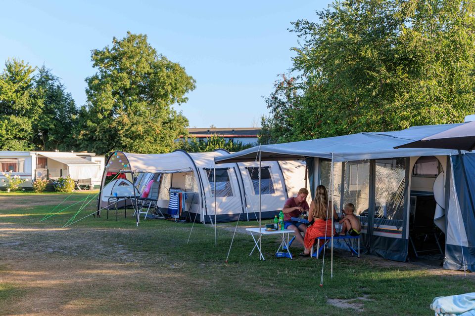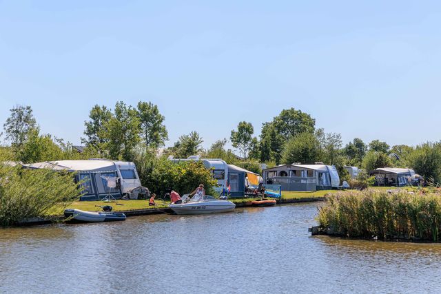 Vijfsterren camping met ruimte plaatsen aan het water en met eigen sanitair. Op het park zijn verschillende faciliteiten.