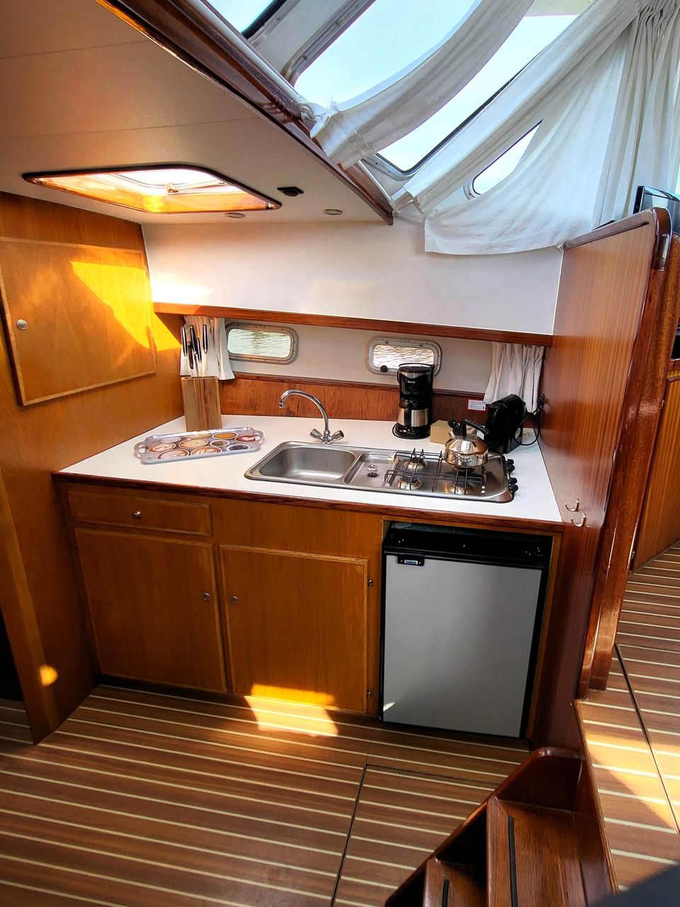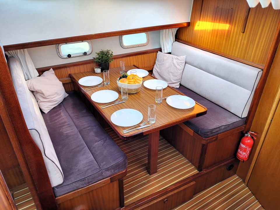 Met drie cabines en zes vaste slaapplaatsen heb je volop ruimte aan boord. De sfeervolle verlichting en aanwezigheid van een Nespresso-machine zorgen voor extra comfort. Daarnaast beschik je over een aparte douche en toilet, 230V via een omvormer en een boegschroef, wat het varen en manoeuvreren een stuk makkelijker maakt.