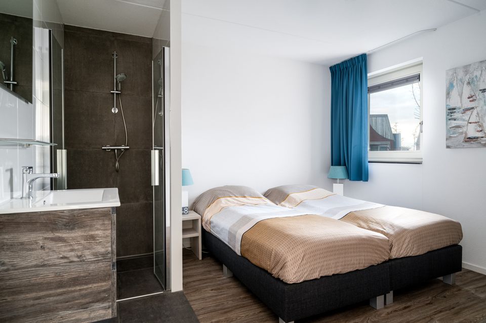 Op de begane grond bevindt zich de hal met separaat toilet. De woonkamer bevat een zit- en eethoek met flatscreen TV. De open keuken beschikt o.a. over een vaatwasser, combi-magnetron en koffiezetapparaat. De waterzijde van de woning heeft openslaande deuren naar het terras met tuinmeubilair. Er zijn ook 8-persoonswoningen met een slaapkamer op de begane grond met een inloop badkamer en drie slaapkamers op de verdieping en één badkamer met douche (cabine), wastafel en toilet. De bovenverdieping heeft drie c.q. vier slaapkamers (afhankelijk van het huisnummer waarvoor je kiest) en alle drie c.q. vier zijn uitgevoerd met twee één persoons boxspringbedden (1 woning beschikt over een slaapkamer met stapelbed). De bovenverdieping met vier slaapkamers bevat twee badkamers met douche (cabine), wastafel en toilet.