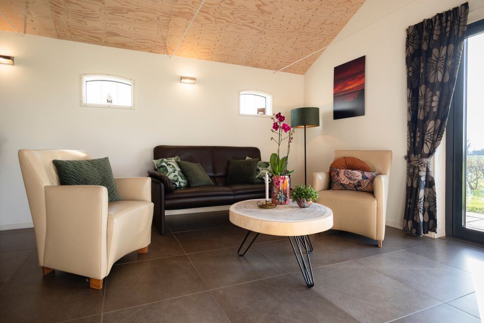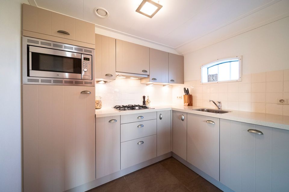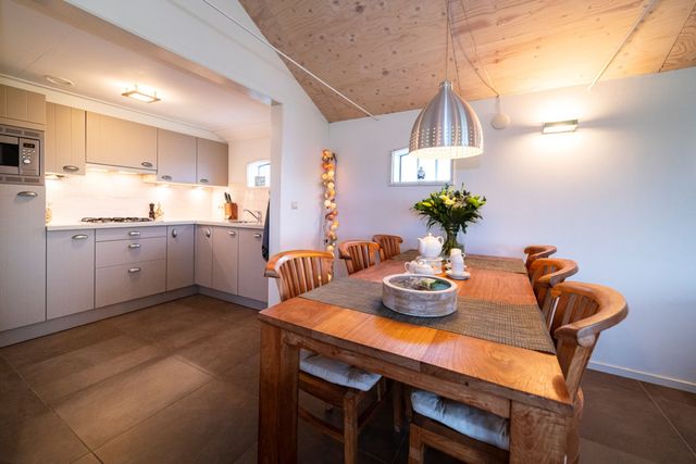 It âld hússtee is een vrijstaande vakantiebungalow voor 4 personen met uitzicht op de Vlakke Brekken. Wanneer je deze prachtige vakantiewoning binnenstapt, valt meteen de ruime woon- en eetkamer op, deze is in een open ruimte waar ook de keuken gesitueerd is. Alle kamers bevinden zich op de begane grond. De woonkamer, de hal en de badkamer zijn voorzien van vloerverwarming, dat maakt dat de woning geschikt is om te huren in elk seizoen. Verder is de badkamer uitgerust met een douche, wastafel, wasmachine/-droger en een toilet. De luxe keuken is van alle gemakken voorzien met een grote koelkast, combi-magnetron en vaatwasser. De zonnige tuin, van ongeveer 500 m², heeft een terras met tuinmeubelen. Tot slot is er nog een aanlegsteiger en kun je zwemmen op ongeveer 50 meter van de vakantiebungalow.