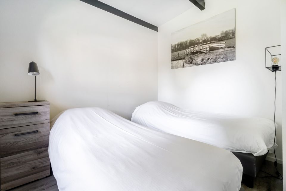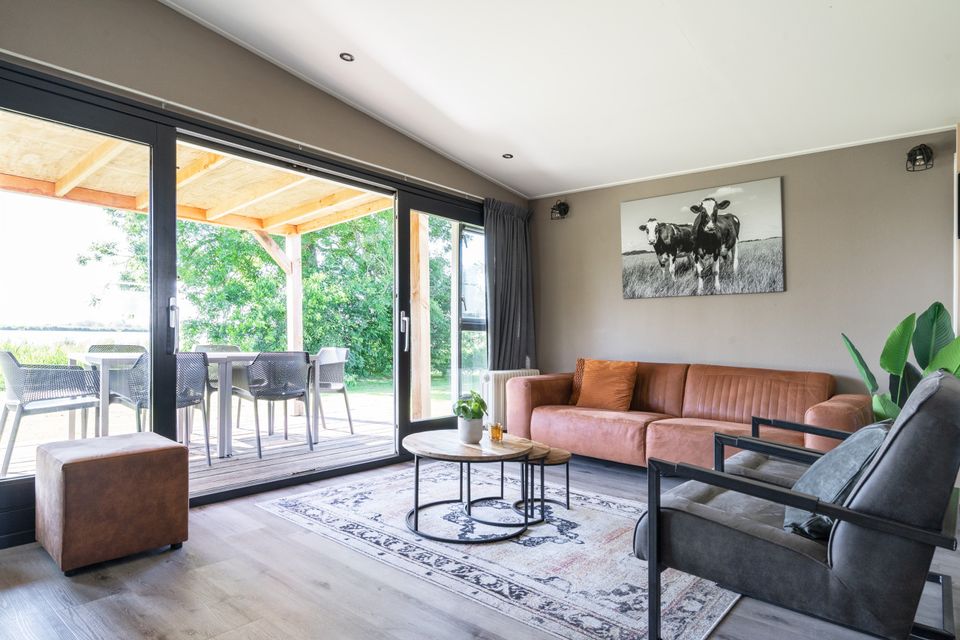 De ruime bungalow is geschikt voor zes personen. Elke bungalow heeft een open keuken met keukenapparatuur en een woonkamer met banken en leunstoelen waar je heerlijk kunt relaxen. De bungalow beschikt over drie slaapkamers met in elke kamer twee eenpersoons bedden. Twee kamers hebben een eigen wastafel. Elke bungalow beschikt over een badkamer met douche, het toilet is apart. Buiten vind je een prachtig terras met tuinmeubilair waar je heerlijk kunt genieten van het mooie uitzicht over het Sneekermeer, de weilanden en het natuurgebied.