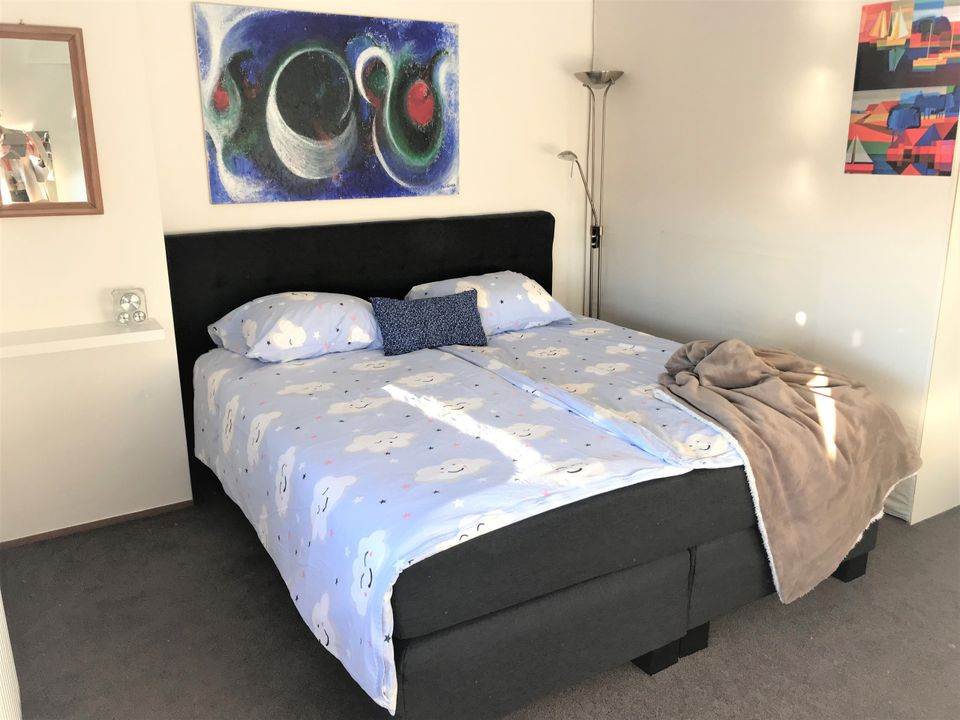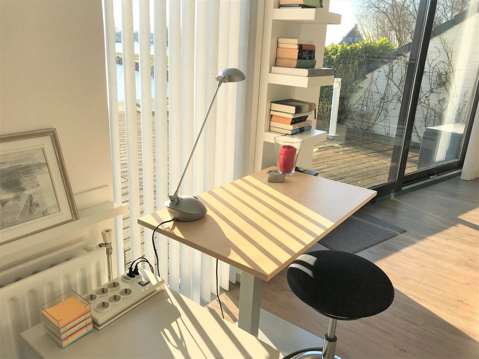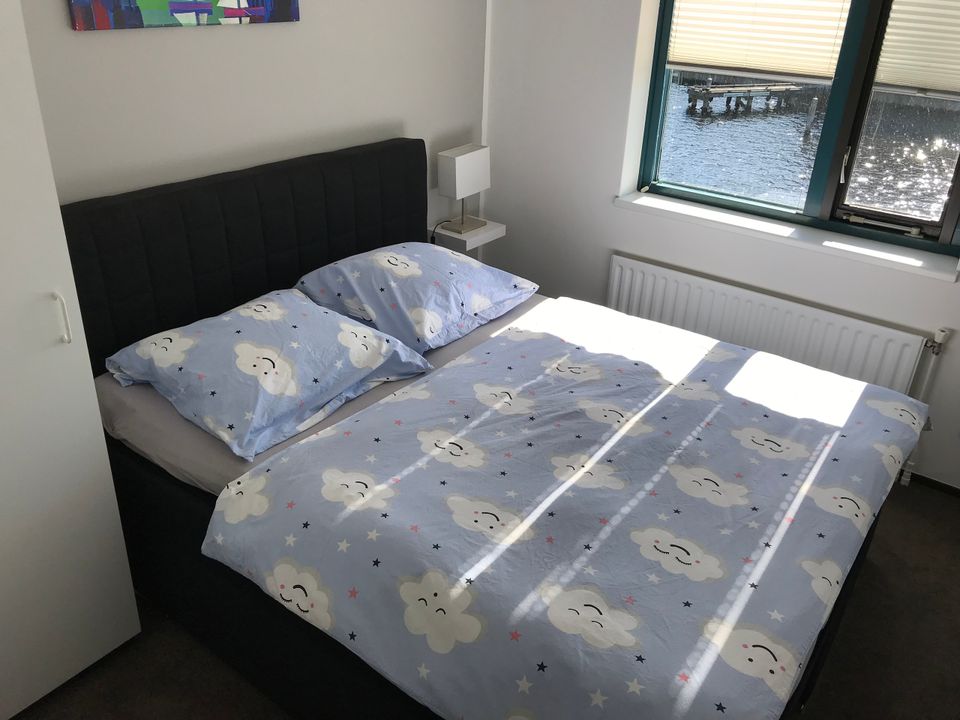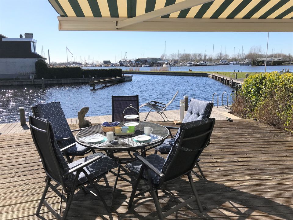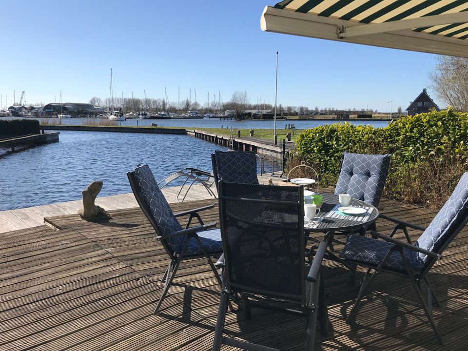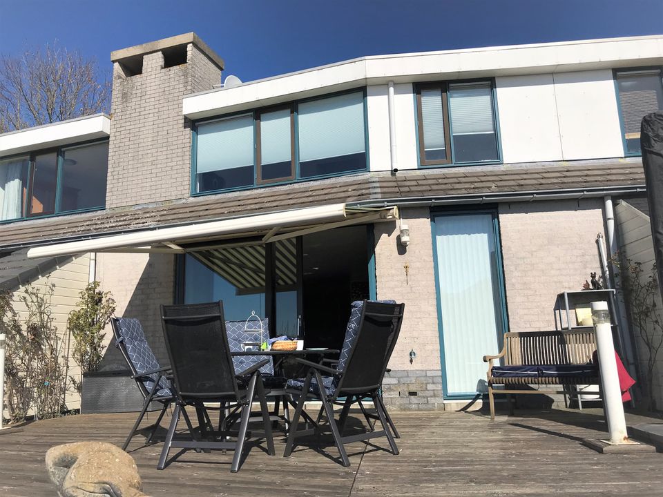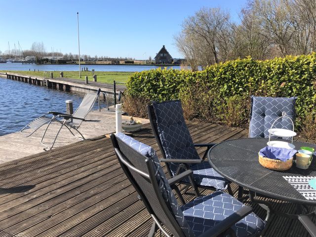 Deze fijne woning is geschikt voor vier personen en is gelegen aan het water. De woning beschikt over een fijne tuin met ruim terras waar je een prachtig uitzicht over het water hebt. Langs de steiger kun je je eigen (gehuurde) boot aanmeren. De woonkamer is ruim en zonnig en de bank is zo opgesteld dat je een fijn uitzicht over de tuin en het water hebt. Tevens heb je een kleine werkplek en gezellige eetruimte in de woonkamer. De keuken is open en beschikt over onder andere een magnetron en vaatwasser. Op de eerste etage zijn twee slaapkamers met elk een tweepersoons (boxspring-)bed. De badkamer is ruim opgezet met een ligbad/douche, toilet en wastafel. Op de begane grond vind je nog een tweede toilet.