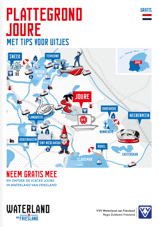 De nieuwe plattegrond van Joure is klaar en nu verkrijgbaar bij VVV Joure. Met deze kaart krijgen bezoekers direct overzicht en inspiratie om de vlecke te ontdekken. Op de voorkant staat een duidelijke navigeerkaart met de belangrijkste highlights. Op de achterkant vinden bezoekers extra informatie en QR codes die direct doorlinken naar de website voor actuele tips en activiteiten.