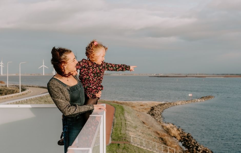 Klaar met de expositie? Neem dan zeker nog een kijkje op het dakterras voor een panoramisch uitzicht over het IJsselmeer en de Waddenzee – twee waterwerelden in één blik.