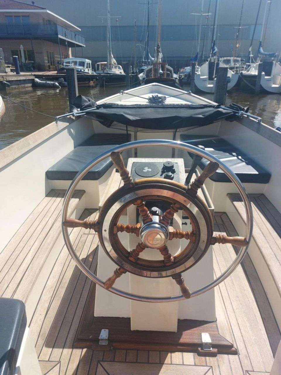 De sloep ligt bij Wellekom Watersport, in de haven aan De Zwaan 8 in Woudsend. Je kunt hier gratis je auto parkeren bij het terrein.