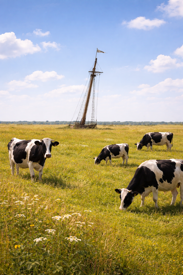 Even boven Witmarsum, waar nu land is, maar vroeger zee, verging honderden jaren geleden het schip van de legendarische ruwe zeebonk Okke Hel. Met man en muis. En een schat. Nog lang stak de mast van zijn schip boven het weiland uit. Op die plek sta...