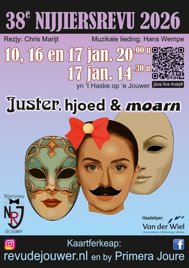 In januari 2026 wordt voor de 38e keer de Nieuwjaarsrevue in Joure op het toneel gebracht. Een mooie traditie waarin sketches, liedjes, acts, grapjes etc. rondom de rode draad "Juster, Hjoed en Moarn" aan elkaar worden geregen tot een wervelende voorstelling.