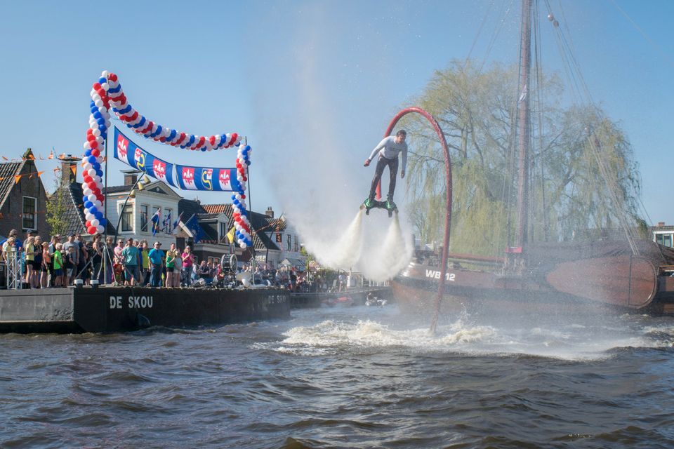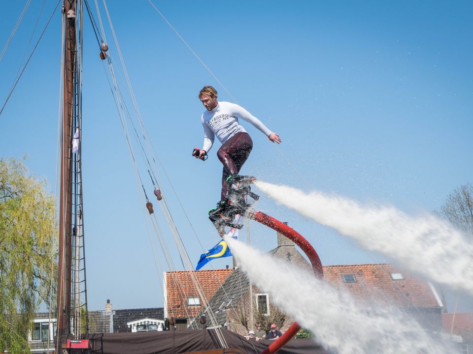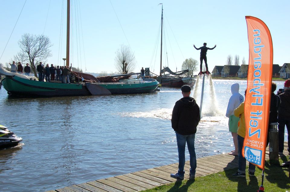 Flyboarden in Heeg. Dit moet je een keer gedaan hebben. Duiken als een dolfijn en vliegen als een vogel. Er kan 1 persoon (minimaal leeftijd 11 jaar) per keer flyboarden. Na een korte instructie ben je zelf aan de beurt! Met behulp van krac...