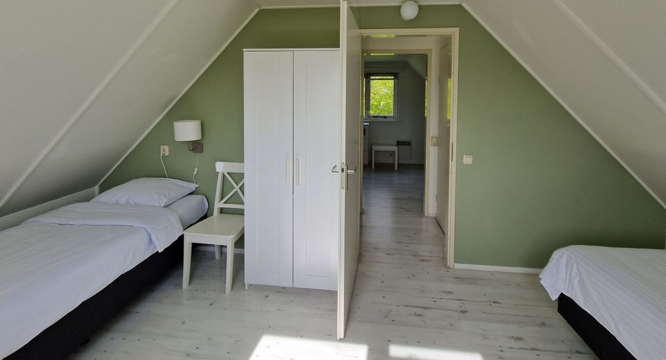 Sfeervol overnachten doe je in deze vakantiewoning op een camping in Woudsend. Je stapt de woning binnen in een ruime hal, meteen links van je is de badkamer met douche, toilet en wastafel. Een deur verderop vind je de eerste slaapkamer, deze bestaat uit twee eenpersoons boxspringbedden. De woonkamer is knus ingericht met een zit- en eethoek. De keuken is modern en bevat onder andere een oven en vaatwasser. Op de eerste verdieping bevinden zich nog twee slaapkamers, deze hebben elk twee eenpersoons boxspringbedden en voldoende opbergruimte in de kasten. Wanneer je gebruik maakt van de woning met kleine kindjes, kun je bij de receptie gratis een kinderbedje en kinderstoel lenen! Rondom het huis is een ruime tuin met picknicktafel en barbecue. Vanaf de woningen loop je binnen mum van tijd naar de haven en kun je heerlijk bootjes kijken.