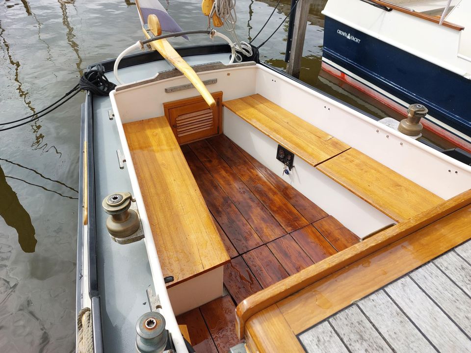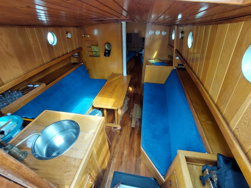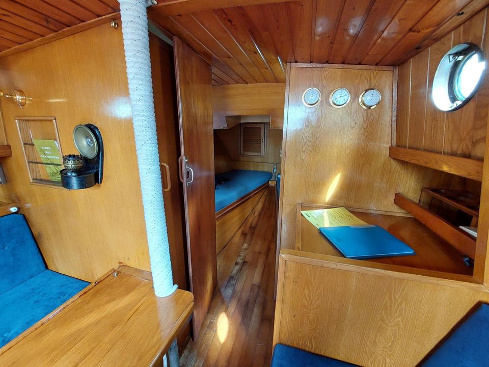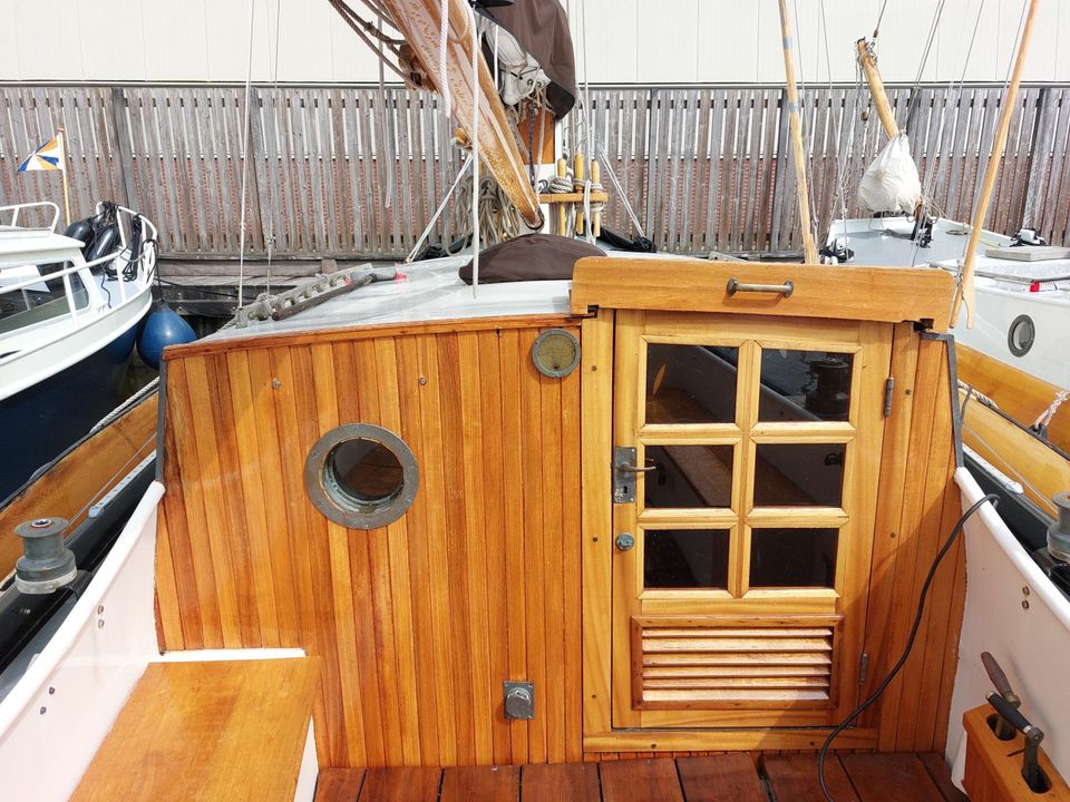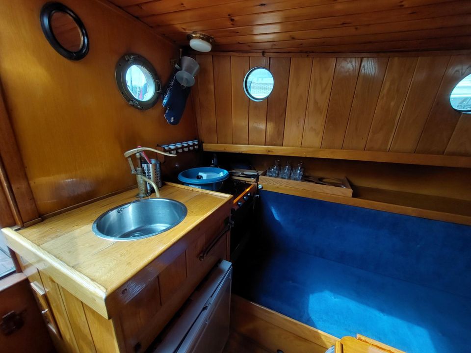 Stap aan boord van deze mooie zeeschouw. De boot heeft verrassend veel ruimte binnen en stahoogte. Binnen is het heel gezellig en je bent van alle gemakken voorzien. In het vooronder is een tweepersoonsbed en een eenpersoonsbed. Van de banken in de kajuit kun je twee slaapbanken maken. De boot is voorzien van een keuken met koelkast, fornuis, oven, elektrische verwarming en een toilet. De boot is makkelijk te zeilen, naast de gewone fok is er ook nog een kluiver en een botterfok.